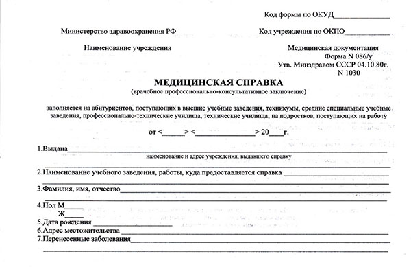 Форма медсправки 086/у выписывается при одном обстоятельстве – когда человек после школы или колледжа подает заявку на поступление в высшее образовательное учреждение. Документ необходим для подтверждения нормального состояния здоровья и гарантии того, что будущий студент будет безопасен для окружающих. После оформления его нужно отнести в деканат не позднее, чем через полгода.